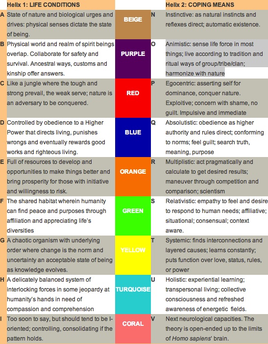Graves çerçevesi içerisinde her sistem iki harfle gösterilir. Birinci harf (A, B, C, D, E ve F) VAROLUŞ SORUNLARINI temsil eder. İkinci harf (N, O, P, Q, R ve S) ise BEYİNDEKİ UYUM MEKANİZMALARINI temsil eder.